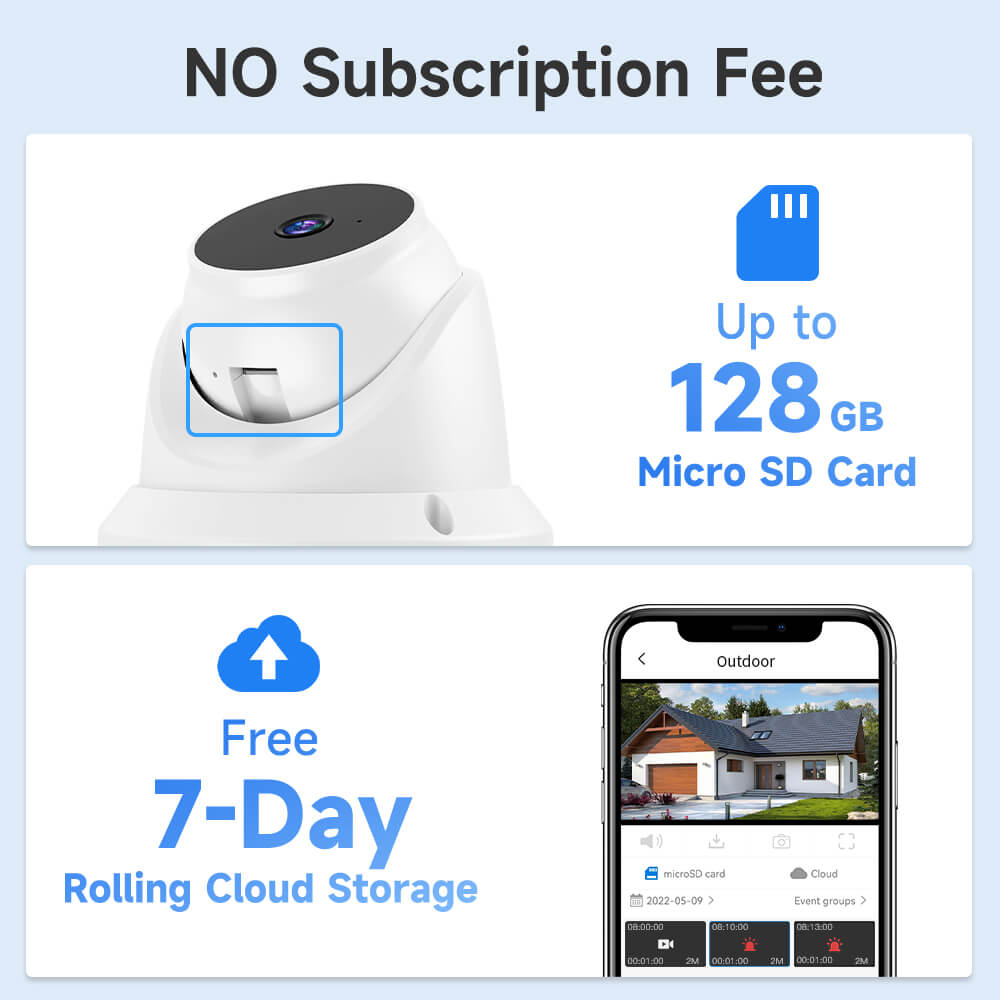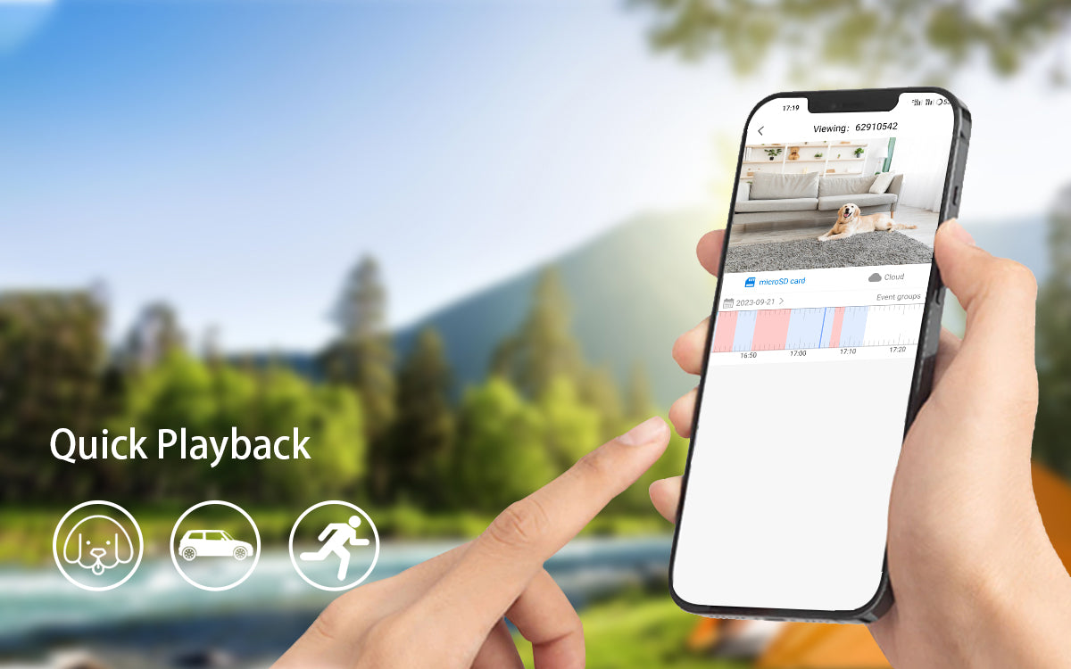 With the advanced intelligent motion detection, this wifi security camera outdoor only detect human, reducing 95% false alarms caused by rain, leaves, animal and insects. You can get more specific notifications and instantly see what is triggering alerts with a glance at the phone's screen.