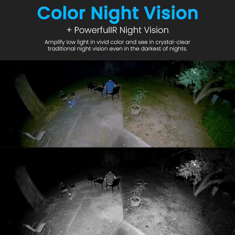 The 8 powerful infrared LEDs in this 2K security camera emit invisible lights that pierce the darkness up to 100 feet.