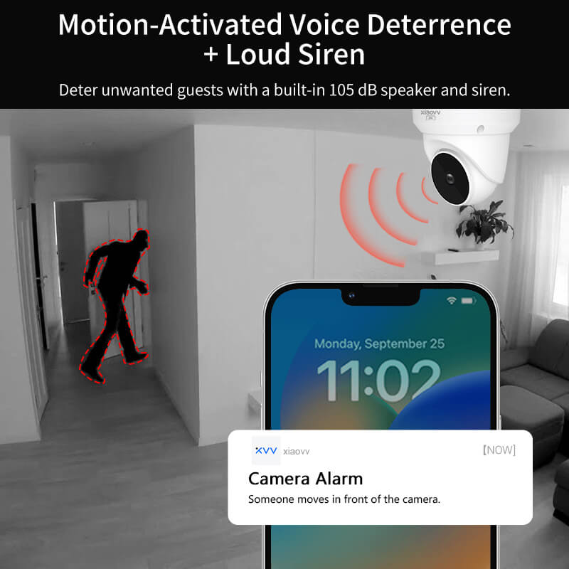 At the same time, it can automatically follow the moving person and give your family and property more protection.