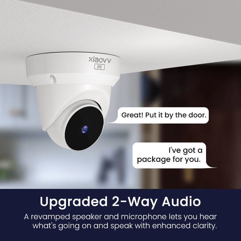 This 2K Ultra HD camera provides four times the definition of 1080p HD to bring you flawless pictures. The live view and playback vividly present every detail of your home or store. With the mic and speaker built in the camera, you can hear and talk to the person on the camera side in real time, wherever you are.